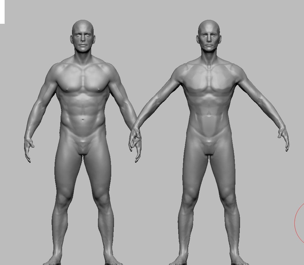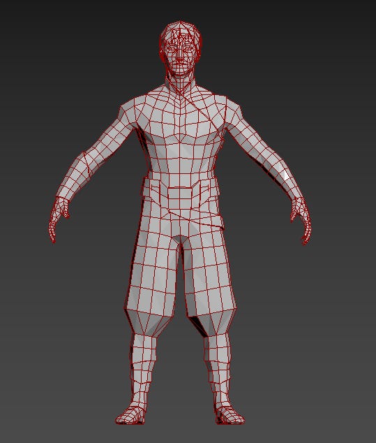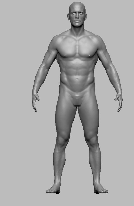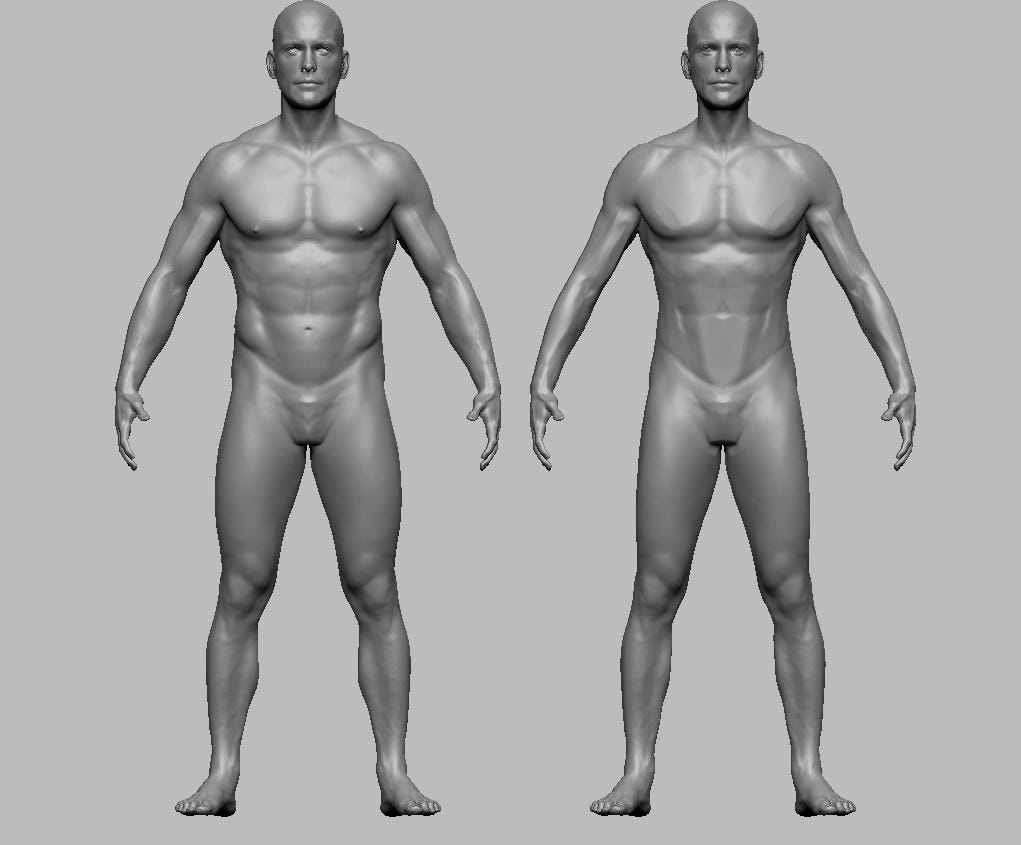 You also need to think about how well it’s going to animate pretty early on. With a muscular character like this, it might be a good idea to separate the arms slightly because of possible rigging/animation difficulties.