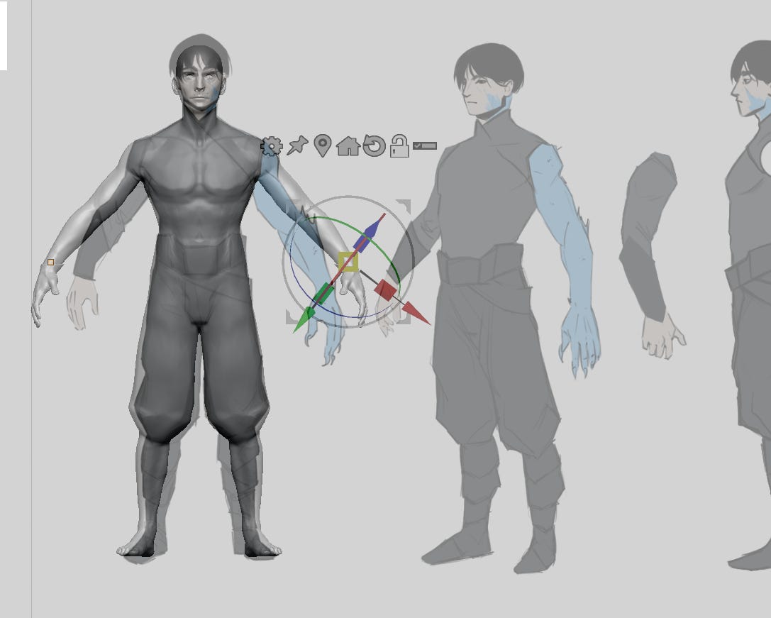 At this point, I also overlay the character and concept a lot, so I can match the concept as much as possible.