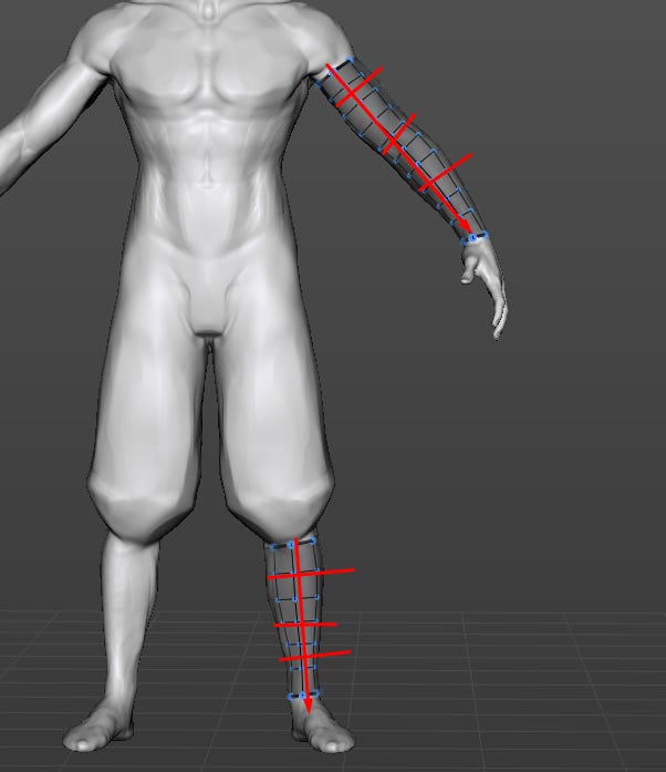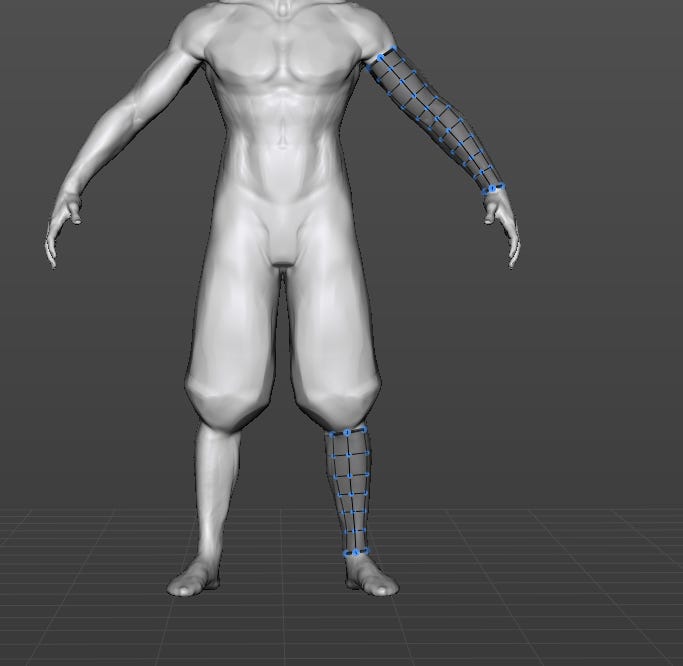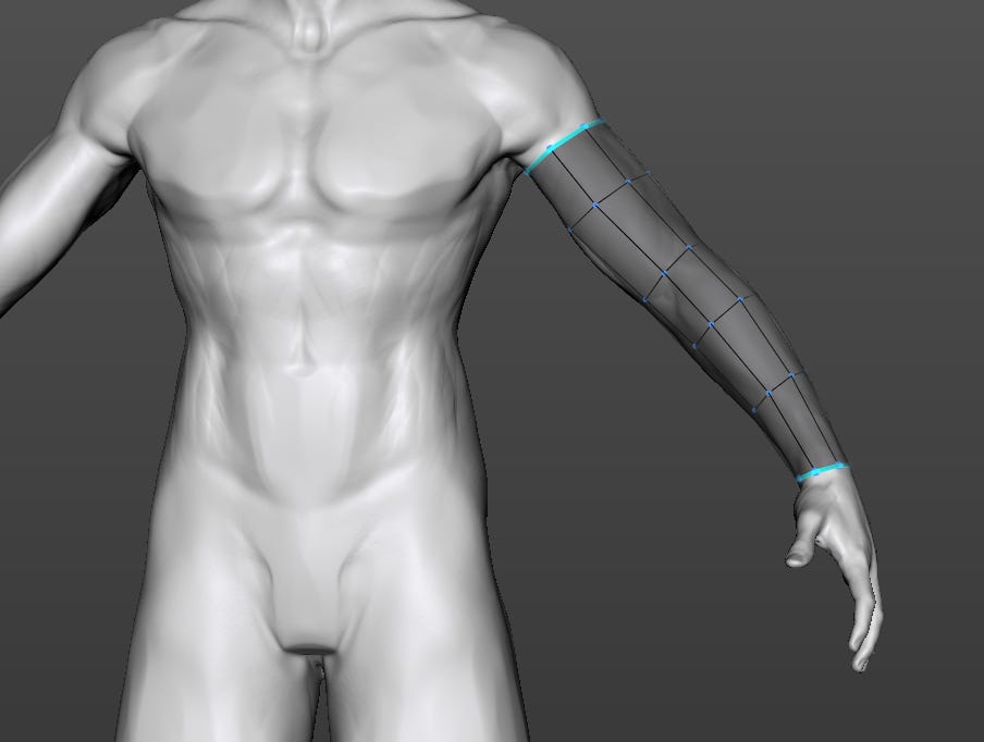 I start by setting up a clear idea of what level of detail I’m going for, here it’s low poly style, so 8 poly around the arm is good.