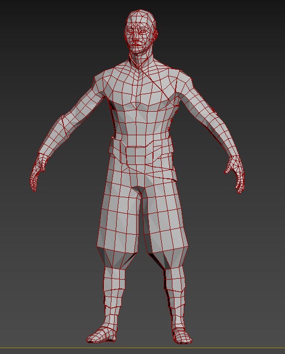 So at this point, you would like to have something that has the correct proportions, correct silhouette, and if you are working in low poly, the correct modeling.